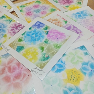 アジサイ記念に「いろどりのアジサイのうちわ」を作ってくださいね。