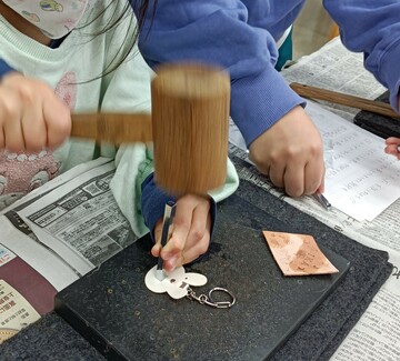 手を使って世界にひとつのキーホルダーが完成します。