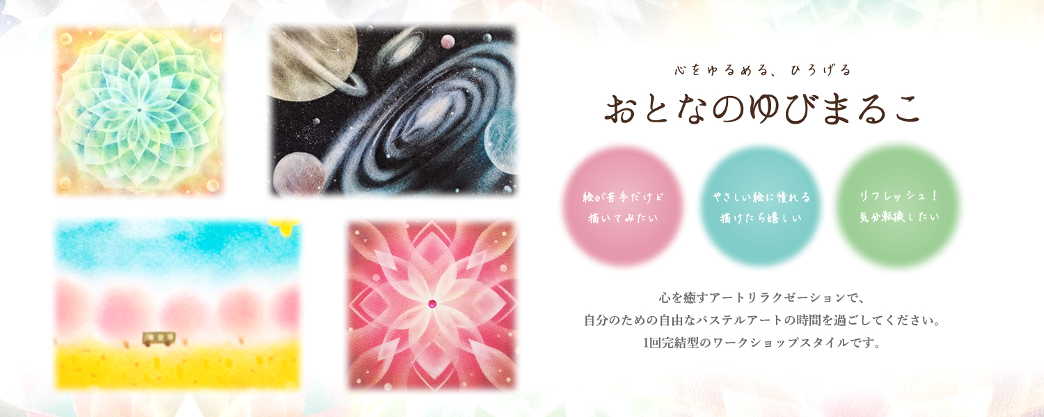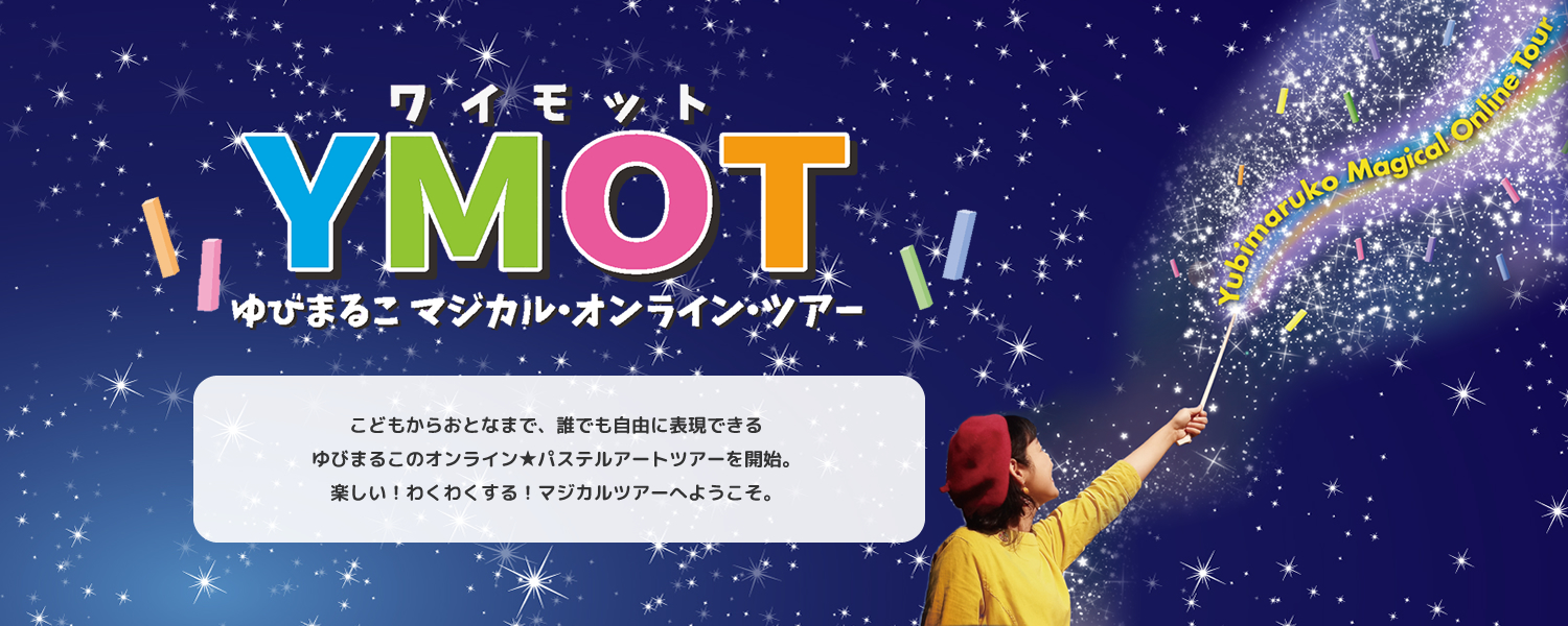 もっとワイワイYMOT! ゆびまるこマジカルオンラインツアーへようこそ! パステルアートを通じて自由な表現活動を楽しむゆびまるこでは、こどもアートやおとなアート、講師養成講座などをオンラインで提供しています。 |