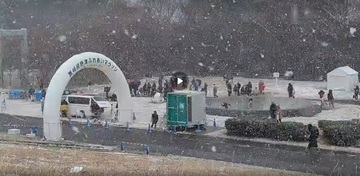 さすがに吹雪いている中でのゆびまるこのワークはできないと判断。